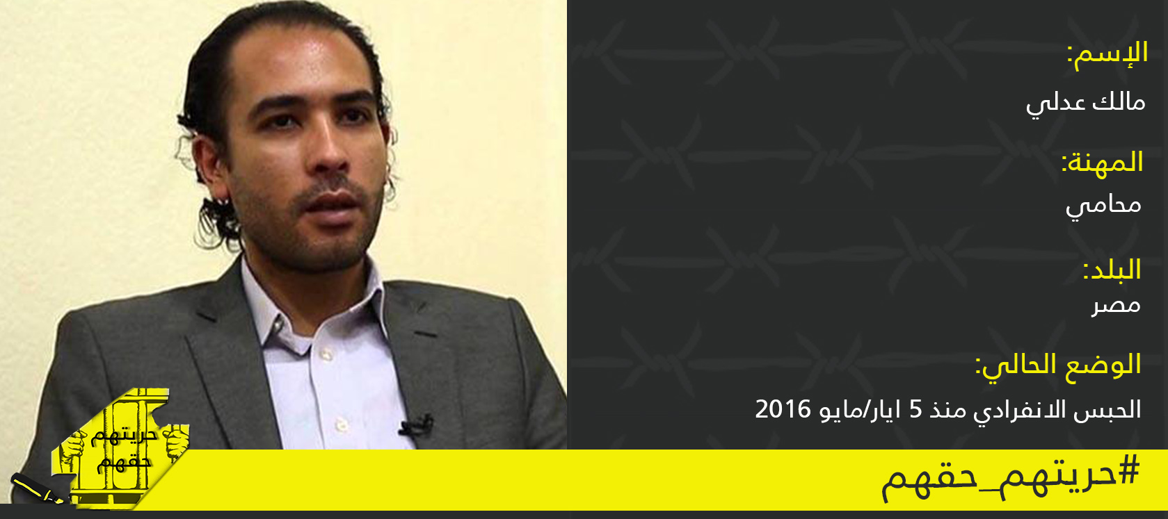 مالك عدلي سجين رأي شهر تموز/يوليو 2016