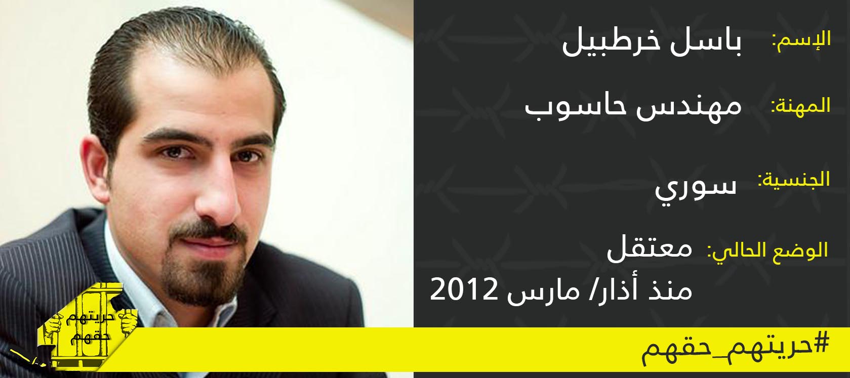 باسل خرطبيل سجين شهر اغسطس 2016